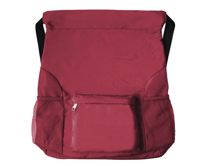 Morral tipo backpack semi-impermeable con tirantes ajustables que sirven para cerrar el producto, bolsas laterales de malla e interior con doble forro y división para guardar accesorios. Cuenta con un compartimento frontal con cierre.