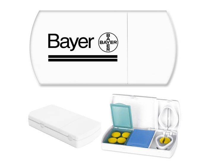 Pastillero cortapastillas. Incluye: dos estuches para separar medicamentos. Artículo Promocional