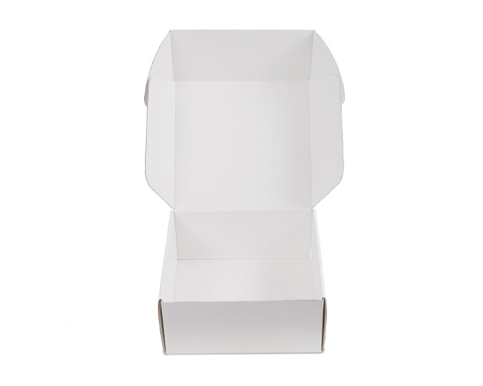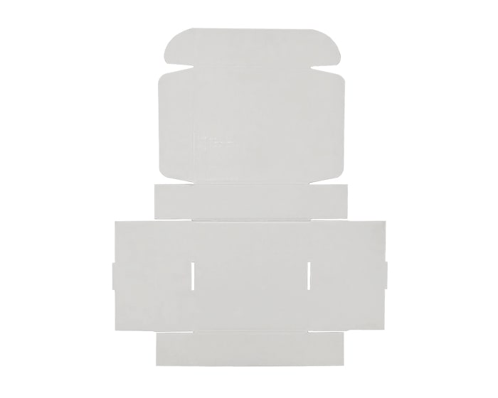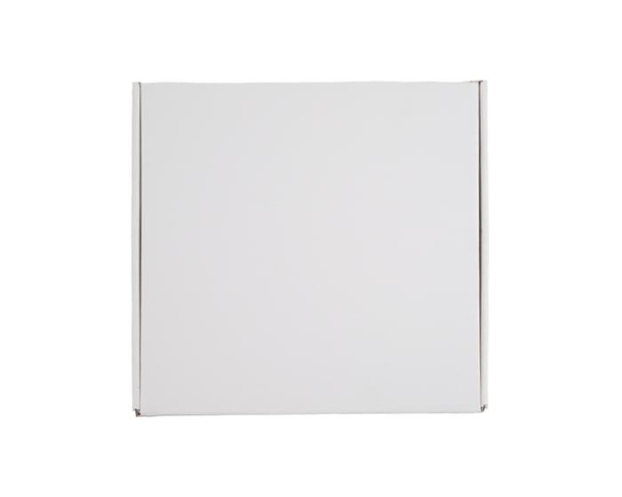 Caja de cartón blanco mate, ideal para regalos y kits promocionales. Se entrega desarmada. Venta en múltiplos de 10.
