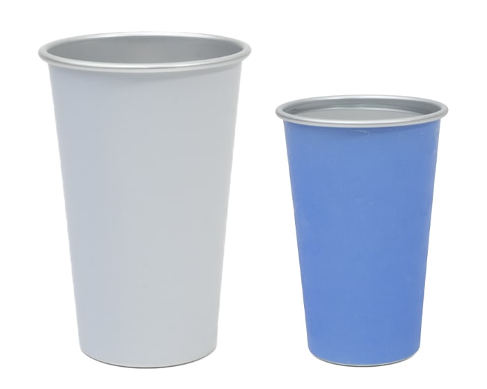 Vaso de aluminio de grado alimenticio, que cambia de color con bebidas frías (menores a 8°C). No apto para bebidas calientes. CAP. 470 ml.
