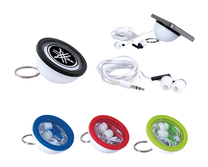Audífonos personales y soporte para celular. Incluye estuche en forma de cápsula y argolla metálica para colgar. Extension total: 123 cm Artículo Promocional