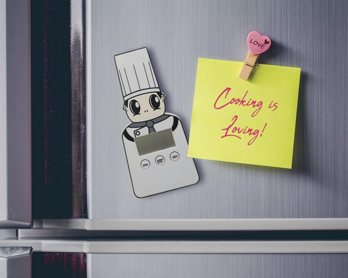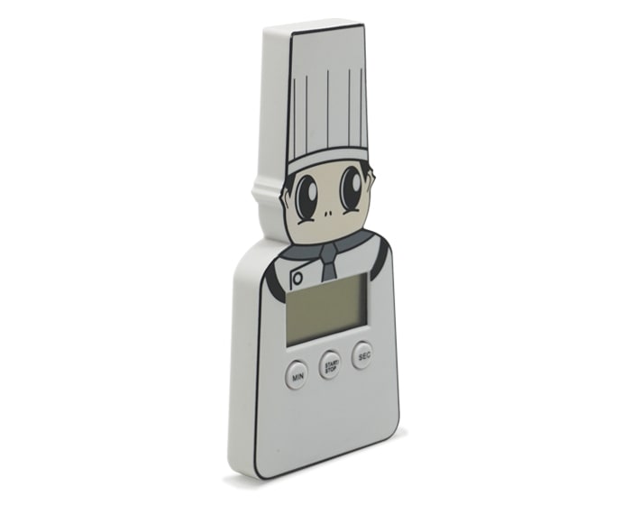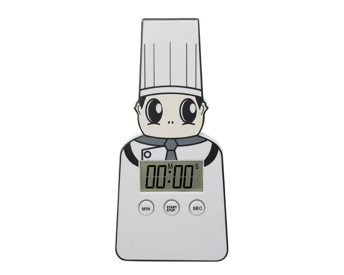 Temporizador de cocina con diseño de chef de 99 min./59 seg. Cuenta con pantalla digital, interruptor de encendido y apagado, botón de minutos, segundos y de inicio con sonido. Incluye imán en la parte trasera y batería de botón para su funcionamiento. Presentación: caja en color blanco. Presentación: caja en color blanco.