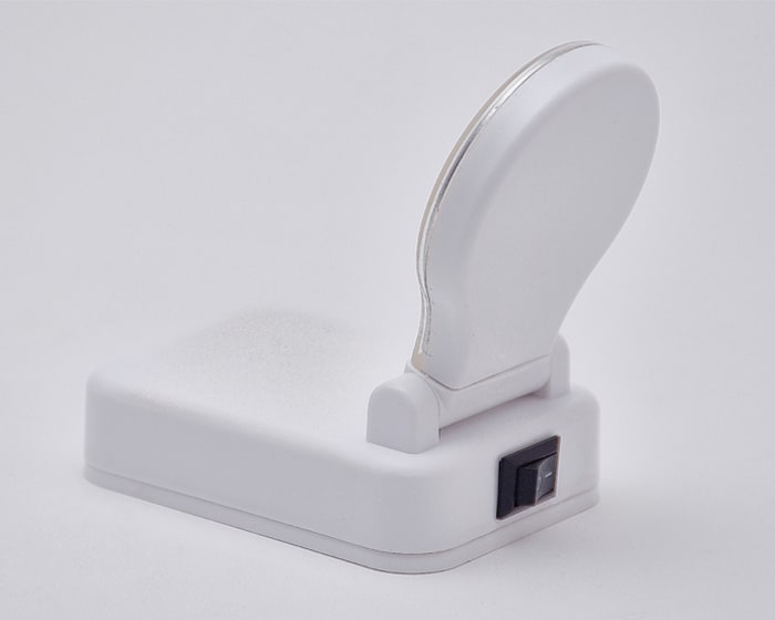 Mini lámpara de LED para lectura con tapa de apertura en peculiar forma de bombilla, con interruptor de encendido- apagado. Utiliza 3 pilas AAA, las cuales vienen incluidas. Presentación: caja en color blanco.