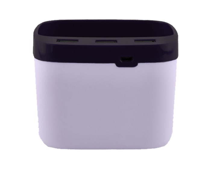 Lapicero HUB de 3 puertos USB con iluminación. Su novedoso diseño permite combinar su uso como lapicero y portacelular. Su iluminación LED en color azul dará al lugar de trabajo un ambiente decorativo y funcional. Presentación: caja en color blanco.