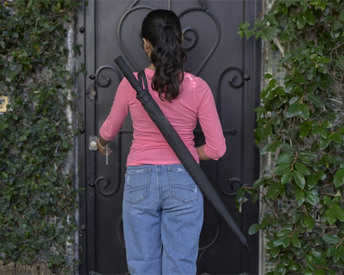 Funda protectora para paraguas (no incluido) con asas y broche para ajustar. Compatible para modelos: A2177 y A2935.