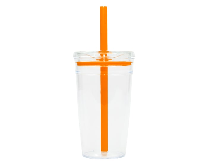 Vaso de plástico transparente, cuenta con tapa a presión anti derrames, sellos de silicón a color y popote del mismo color que los sellos. Es ideal para bebidas frías. CAP. 450ml. Opcional puede adquirir por separado la caja de regalo A3180 CAJA CONGA.