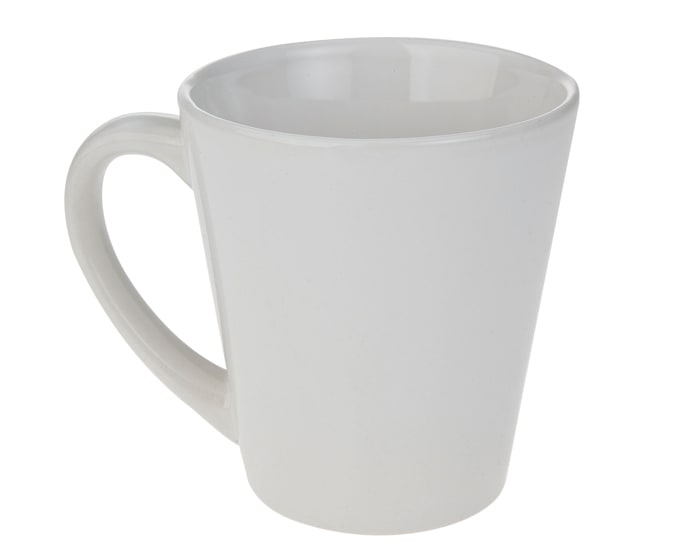 Taza cónica blanca de sublimación. CAP. 325 ml. (11 OZ). Temperatura y Tiempo sugeridos para sublimar: 180 grados / 160 seg. Venta en múltiplos de 12.