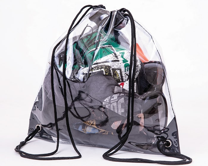 Morral transparente con jaretas y cordón de color. Artículo Promocional