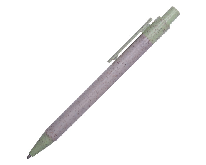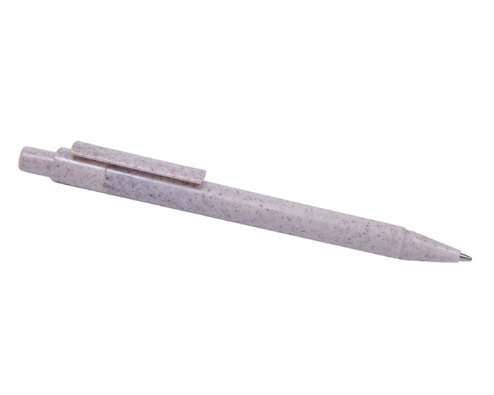 Bolígrafo ecológico a base de fibra de trigo, clip y punta de color. Mecanismo de click.