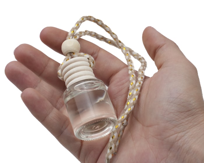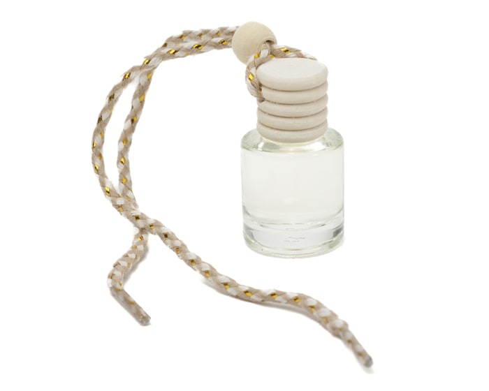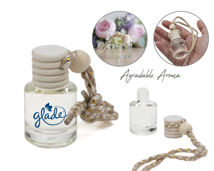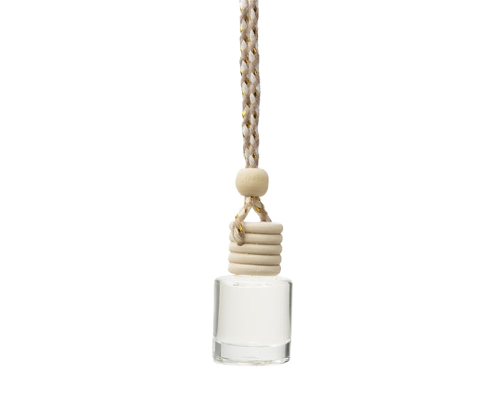 Botella difusora de vidrio de 5 ml. con fragancia; la tapa de madera se impregna desprendiendo el aroma contenido. Ideal para coches, closets o lugares pequeños. Cuenta con cinta ajustable para colgarse. Fragancia incluida. Presentación: Caja individual.