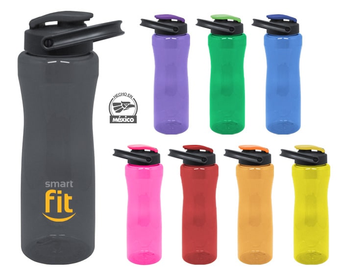 Cilindro de plástico PET con tapa de rosca con boquilla y asa para sujetar fácilmente. CAP. 900 ml. *BPA FREE. Artículo Promocional