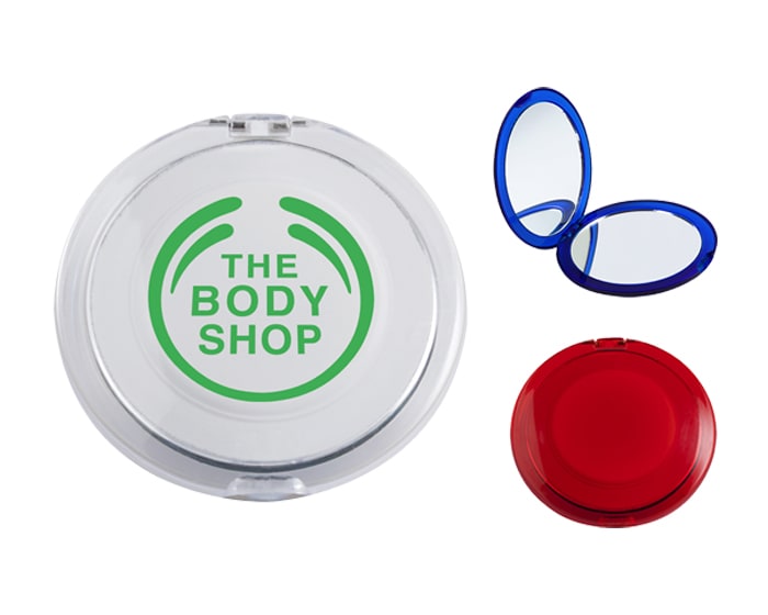 Espejo dual, de plástico traslúcido: con aumento y espejo normal. Artículo Promocional