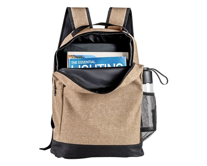 Mochila tipo backpack, con asa y cierre, bolsa de malla lateral, compartimento al frente para guardar cables. Especial para laptop de hasta 16 pulgadas.