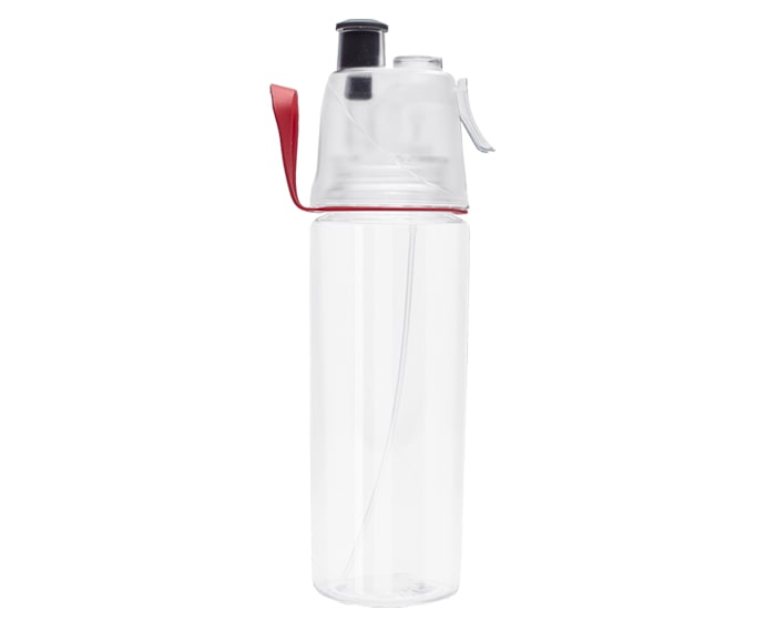 Cilindro de plástico transparente con botón atomizador, el cual permite refrescarle con un fino rociado del líquido. Cuenta con válvula a presión y sellado hermético. Lleva una práctica asa de color para sujetarlo y transportarlo fácilmente. CAP. 600 ml. Presentación: caja en color blanco. Si no hay existencias del color que requiere, puede adquirir el cilindro transparente sin asa y comprar por separado el asa (A2347A), colores de asa disponibles: rojo, verde claro, azul y gris.