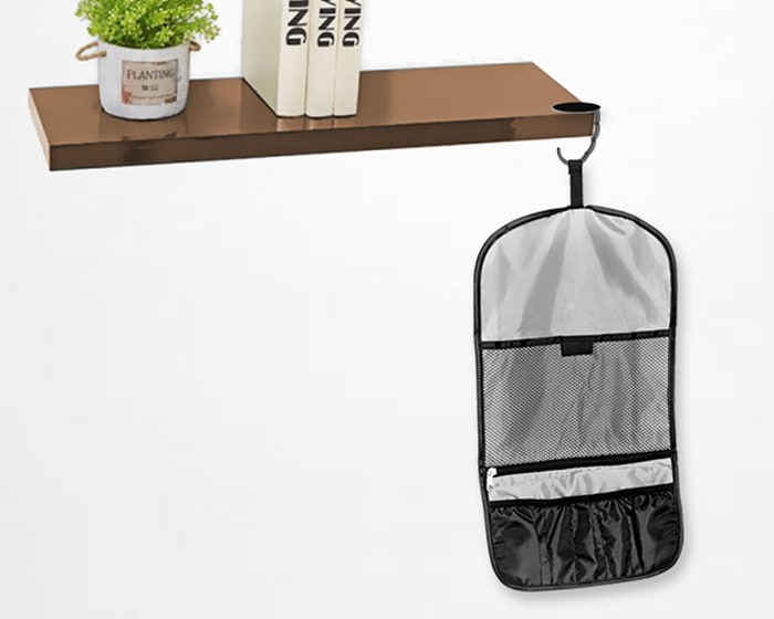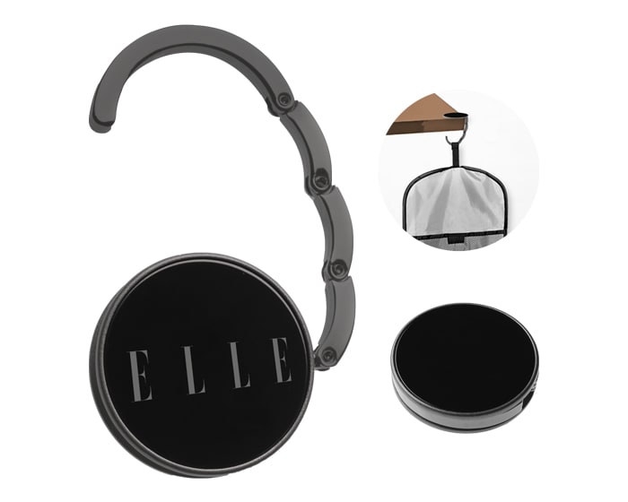 Gancho metálico colgador de bolsas para superficies planas. Fácil de transportar y listo para usar en cualquier ocasión. Soporta hasta 1.5 kgs. Presentación: caja individual de cartón en color negro.