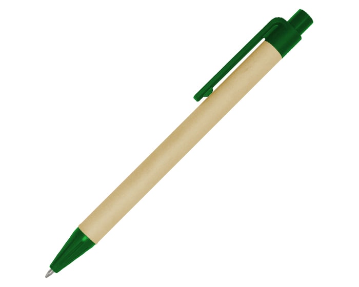 Bolígrafo de papel reciclado, clip y punta de plástico, mecanismo de click.