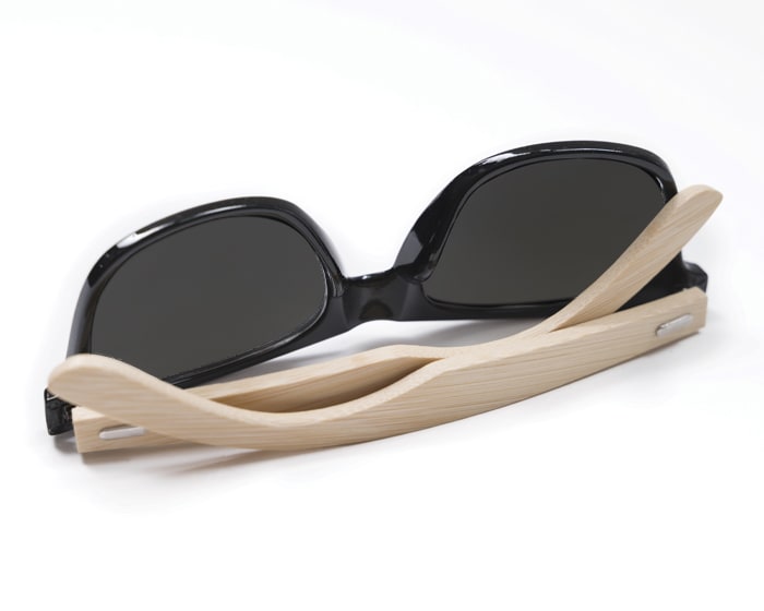 Lentes de sol con mica de protección solar UV400, con varillas de bambú. Incluye funda de poliéster con cordones para guardar. Artículo Promocional