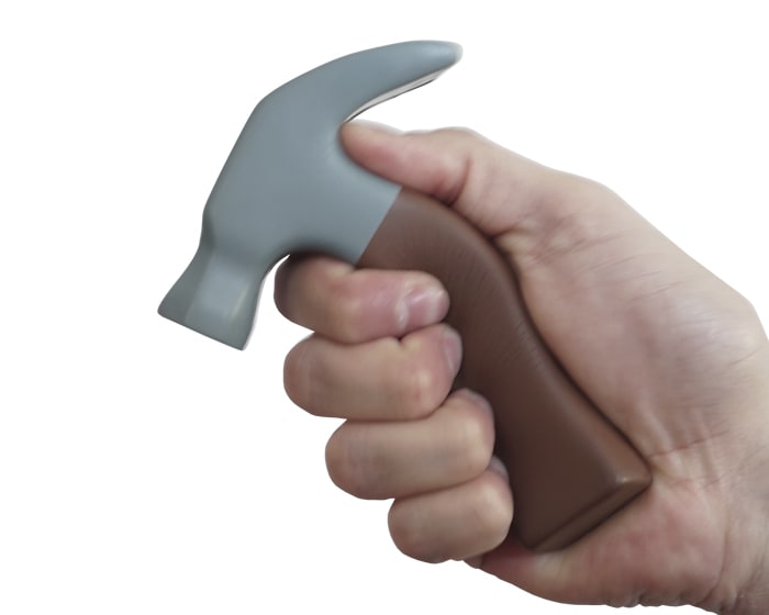 Figura antiestrés en forma de martillo.