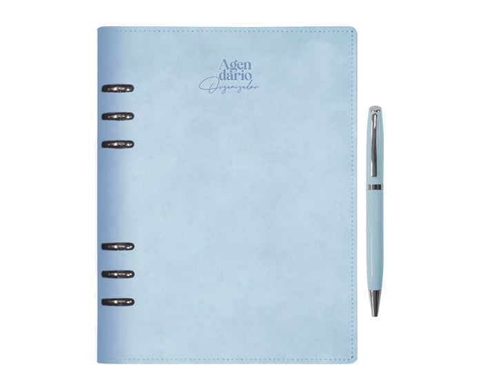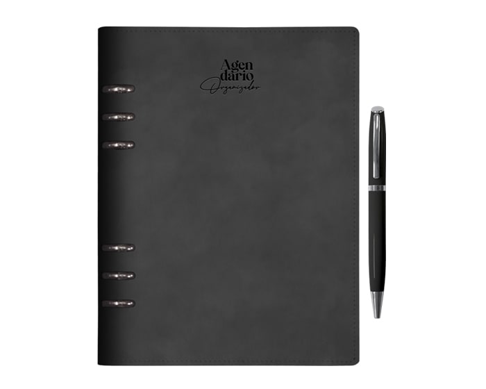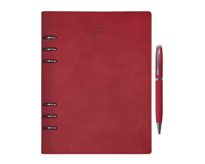 Carpeta tipo agendario organizador de pasta rígida de 6 arillos de metal, su cubierta cuenta en la parte interna con 4 compartimentos para credenciales, uno con ventana plástica, sujetador para bolígrafo. Contiene: Hoja de dedicatoria, hoja de datos de contacto, calendarios del 2025 al 2028, planificadores anuales (4), planificadores de gastos (4), planificadores de proyectos (5), hojas rayadas y hojas punteadas para notas. Incluye: regla de 20 cm, bolsa de PVC con cierre a presión y bolígrafo de aluminio acabado brillante con detalles en cromo. Puedes adquirir el repuesto Parker en tinta azul para este bolígrafo. Presentación: Caja en color negro.