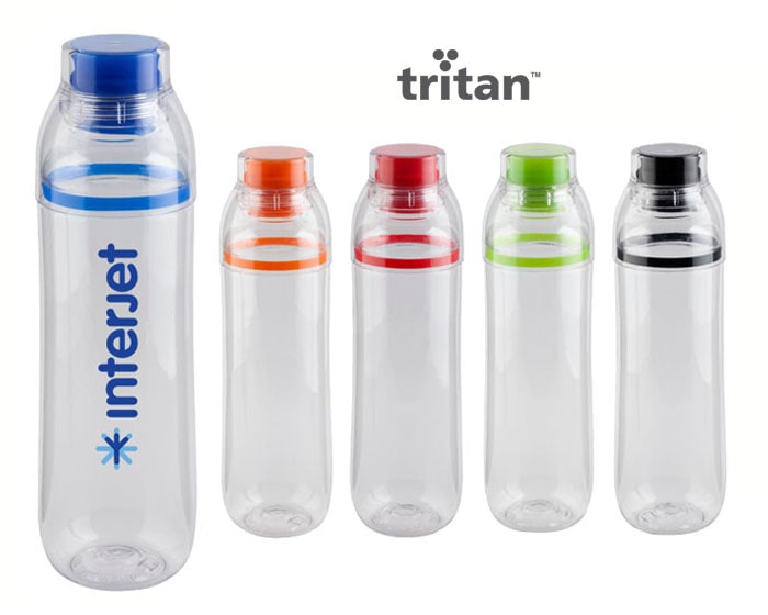Cilindro transparente de Tritan, con anillo de color y válvula de silicón, la tapa puede utilizarse como vaso. CAP. 700 ml. *BPA FREE. Artículo Promocional