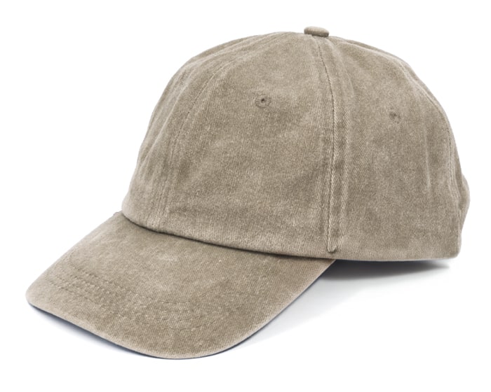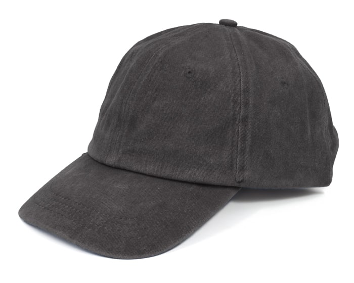 Gorra de algodón de 6 gajos, con acabado deslavado y ojillos bordados. Ajuste con hebilla metálica.