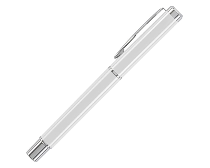 Bolígrafo de plástico con tapa, cuenta con clip y detalles en acabado cromado. Tinta de gel en color negro.