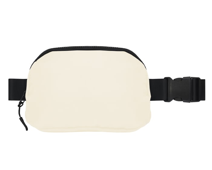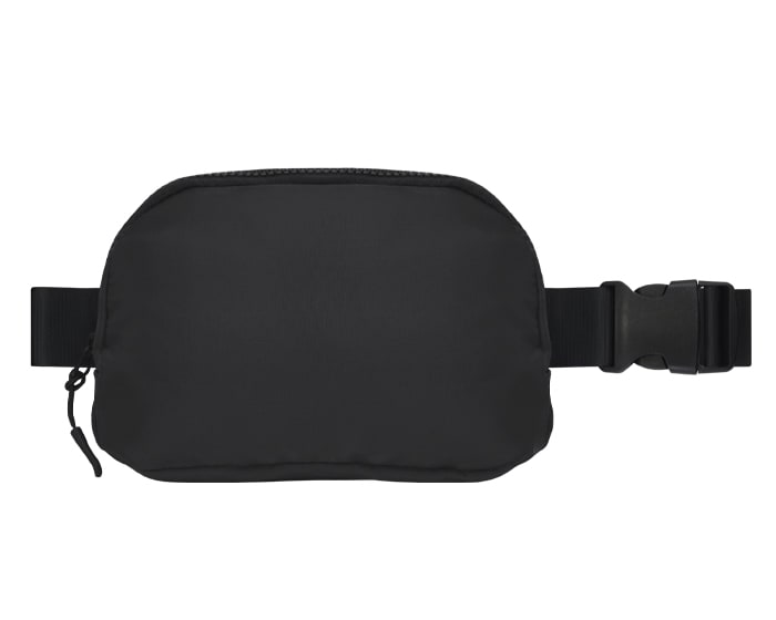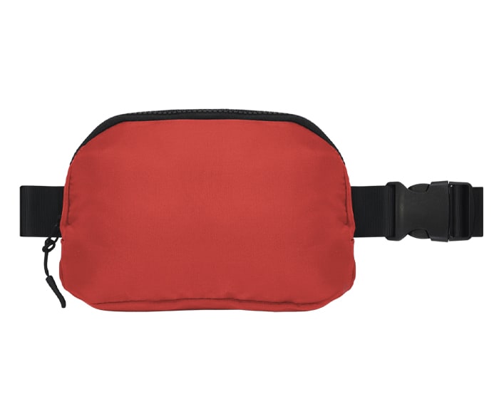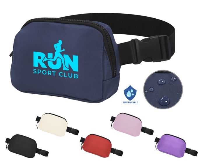Cangurera impermeable con cinta ajustable y broche de seguridad. Cuenta con 2 compartimentos uno principal y uno trasero, 2 tiradores en color negro, compartimento interno de malla con resorte y broche para colgar llaves.