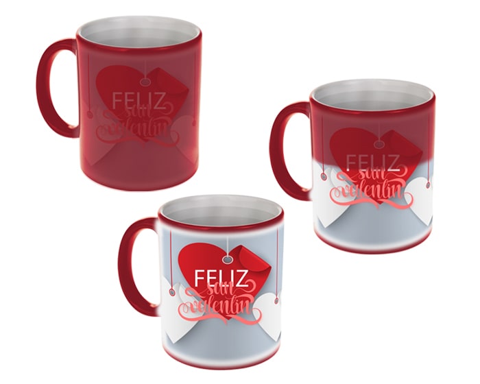 Tarro mágico de sublimación. El diseño aparece al servir agua caliente. CAP. 325 ml. (11 OZ). Venta en múltiplos de 12. Artículo Promocional