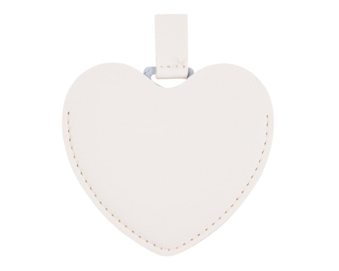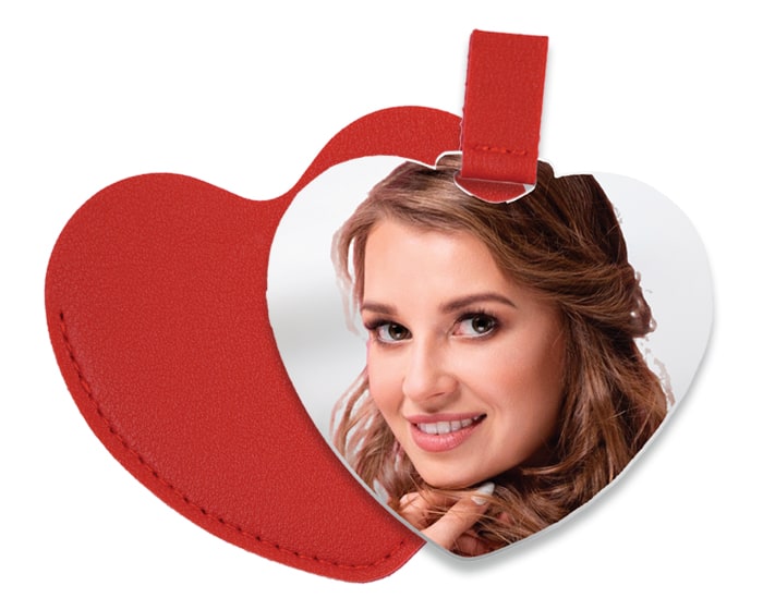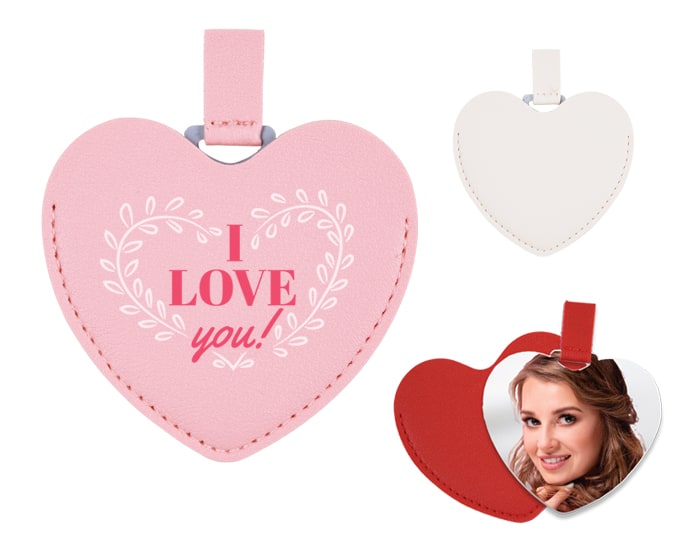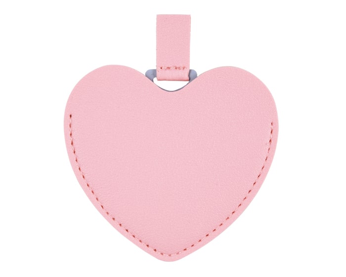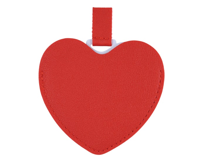 Espejo de acero inoxidable con cintillo y funda de poliuretano en forma de corazón. Artículo Promocional