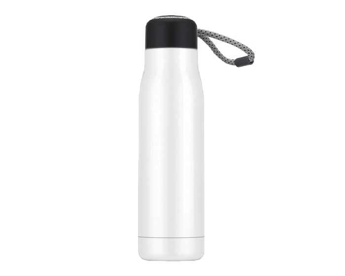 Termo de doble pared para sublimación insulado al alto vacío. Mantiene las bebidas frías por 12 hrs. y calientes por 8 hrs. Tapa de rosca con asa de poliéster para sujetarlo fácilmente. CAP. 500 ml. (17 OZ). Presentación: Caja en color negro.