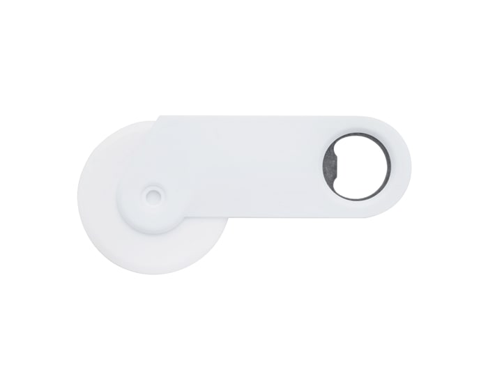 Cortador de plástico para pizza con destapador de metal para botellas. Artículo Promocional