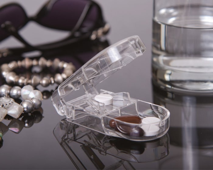 Estuche para pastillas. Incluye corta pastillas.