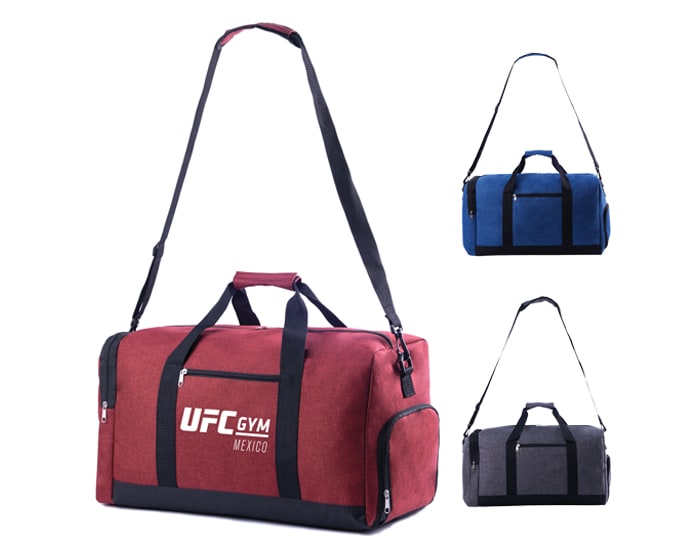 Maleta deportiva con 2 compartimentos laterales, uno para guardar tenis y el segundo para objetos personales. Cuenta con bolsa externa con cierre, correa ajustable y asas laterales.