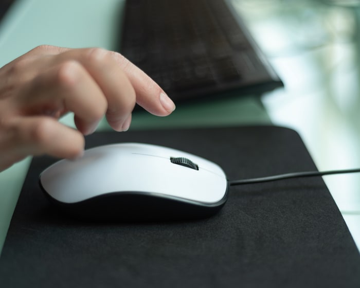 Mouse alámbrico con botón de scroll. Presentación: caja en color blanco.
