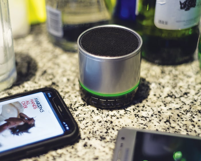 Bocina bluetooth con manos libres y luz LED interior. Con botón de encendido, controles de audio, entrada AUX, entrada para USB. Incluye cable de carga y AUX. Presentación: caja en color blanco.