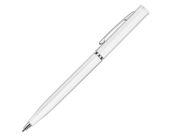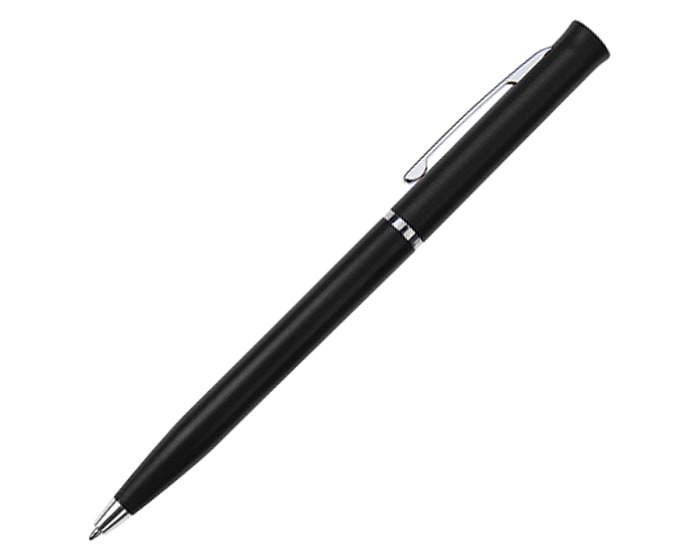 Bolígrafo plástico con terminado mate, con punta y clip en acabado metálico. Mecanismo retráctil.