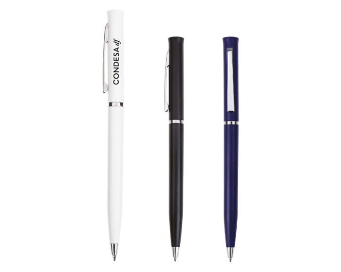 Bolígrafo plástico con terminado mate, con punta y clip en acabado metálico. Mecanismo retráctil. Artículo Promocional