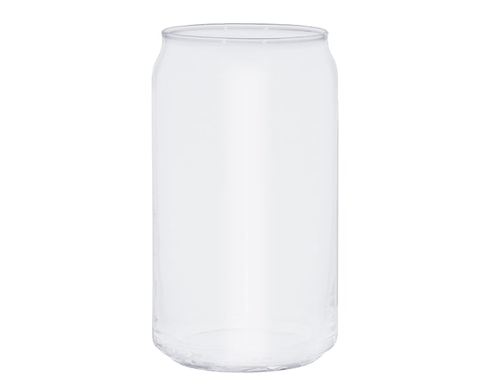 Vaso de vidrio satinado para sublimación con forma de lata. CAP. 470 ml. (16 Oz). Venta en múltiplos de 12.