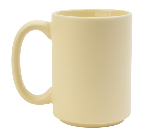 Tarro de cerámica apilable de sublimación con acabado mate en el exterior y brillante por dentro. CAP. 445 ml. (15 OZ). Venta en múltiplos de 12. Artículo Promocional