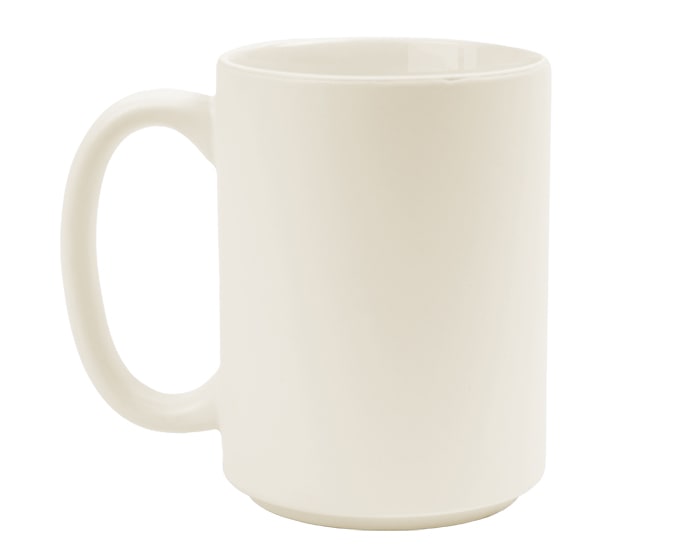 Tarro de cerámica apilable de sublimación con acabado mate en el exterior y brillante por dentro. CAP. 445 ml. (15 OZ). Venta en múltiplos de 12.