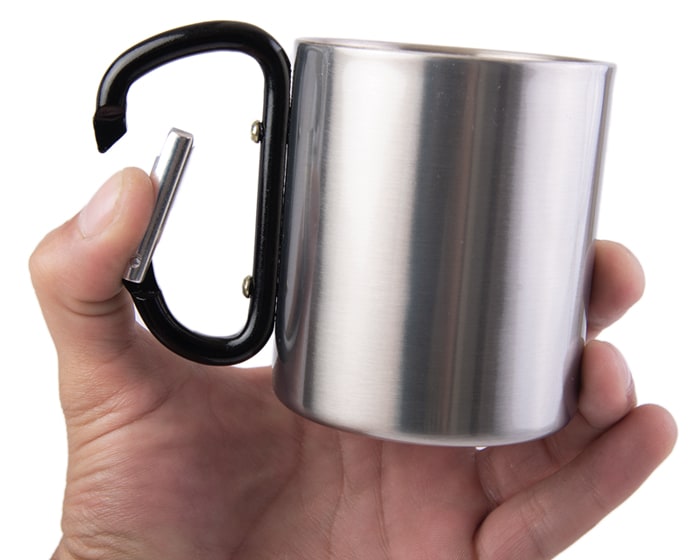 Taza de doble pared de acero inoxidable para sublimación, con asa de gancho para colgar. CAP. 220 ml. (8 OZ). Presentación: caja en color blanco. Presentación: caja individual.