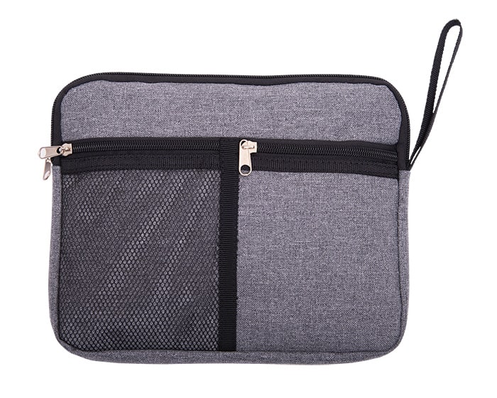 Estuche multiusos con compartimientos, 1 interior y 2 al exterior con cierre. Con asa para trasportar. Artículo Promocional