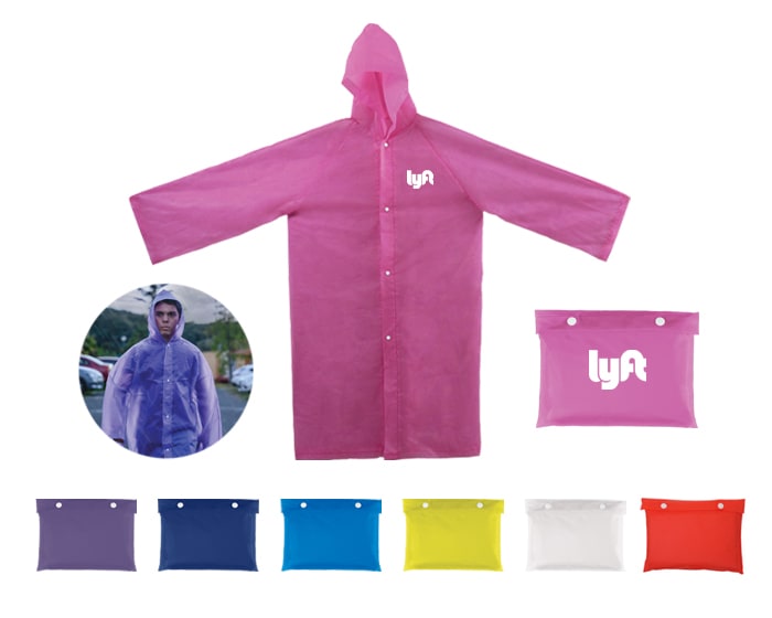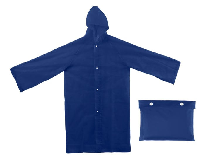 Impermeable con botónes. Incluye funda portátil del mismo material con broche de botón. La impresión requiere tinta especial.