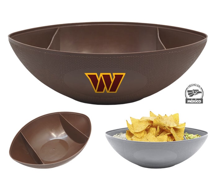 Plato botanero en forma de balón de fútbol americano, cuenta con 3 divisiones. Cap. 1,250 ml. Artículo Promocional