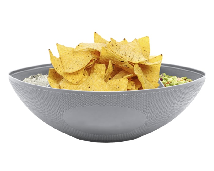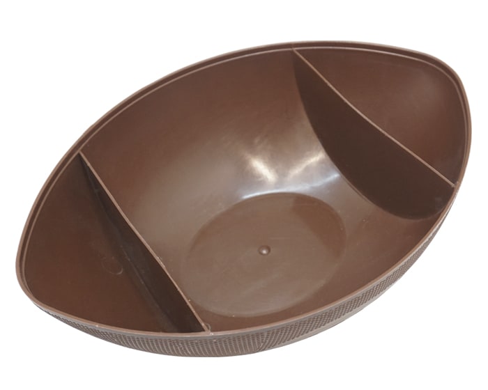 Plato botanero en forma de balón de fútbol americano, cuenta con 3 divisiones. Cap. 1,250 ml.