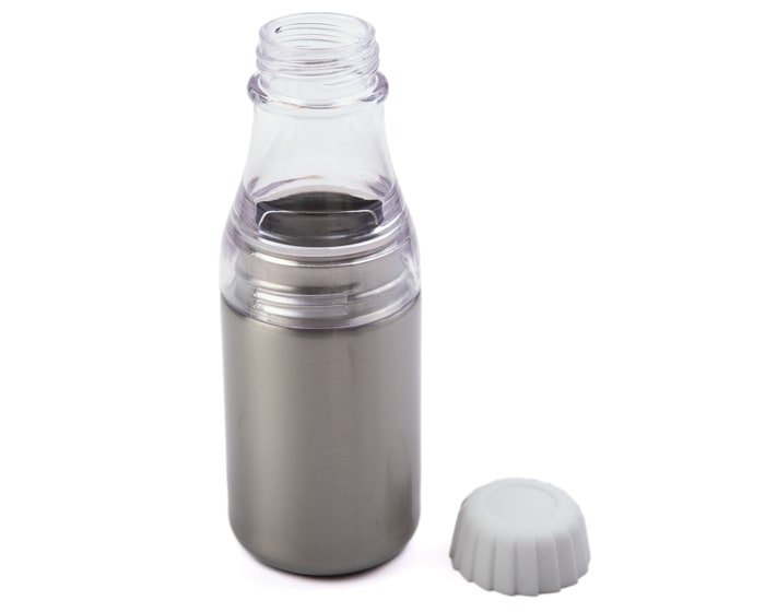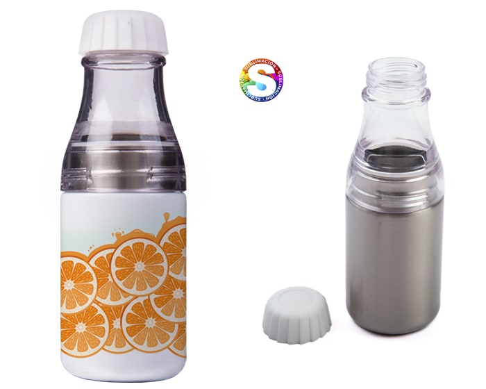 Cilindro de acero inoxidable de sublimación. Aviso: Separar la parte de plástico al sublimar. CAP. 445 ml. (15 OZ). Presentación: caja en color blanco. Temperatura y Tiempo sugeridos para sublimar: 195 grados / 45 seg.