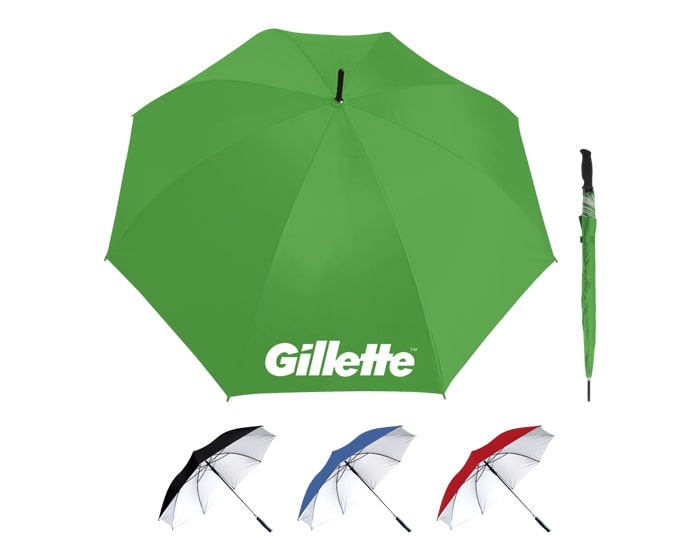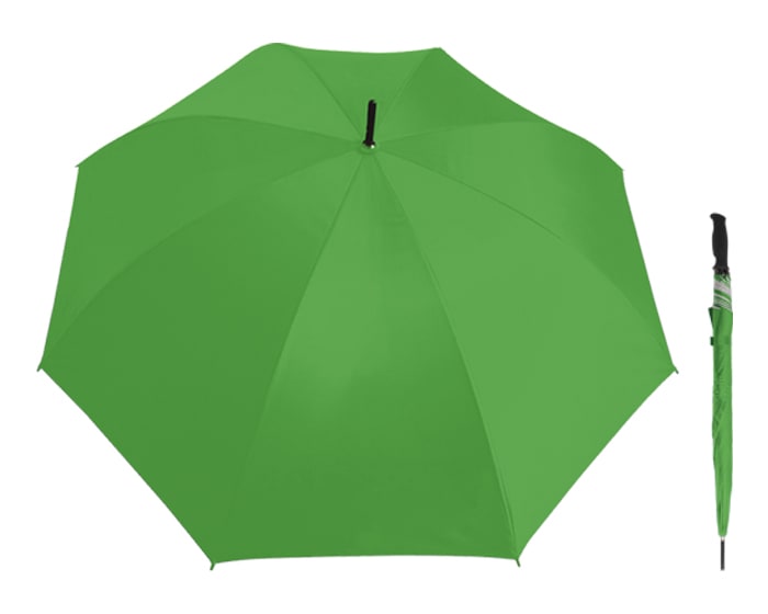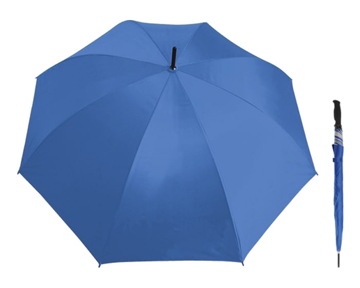 Paraguas con forro de protección UV, botón de apertura automático, varillas y eje de metal reforzado, mango de plástico ergonómico. 8 gajos. Artículo Promocional