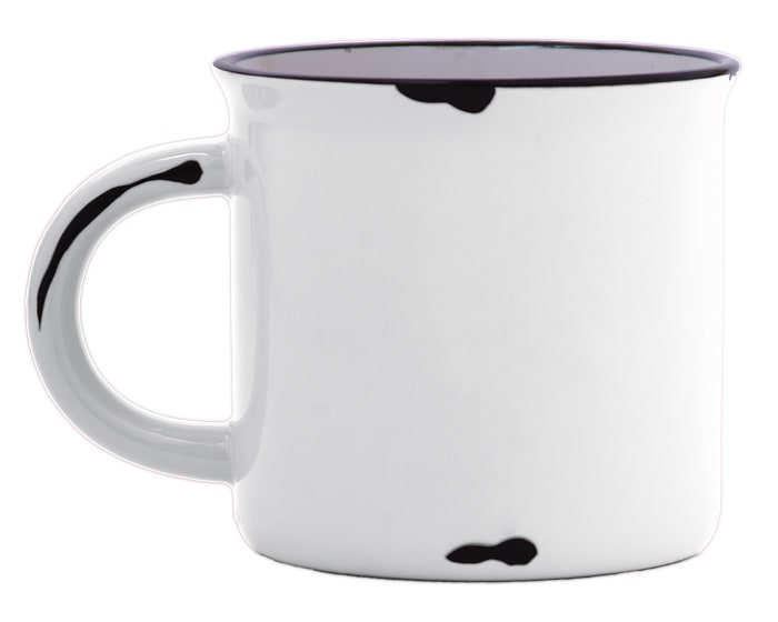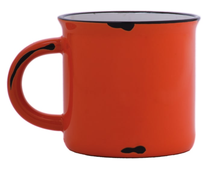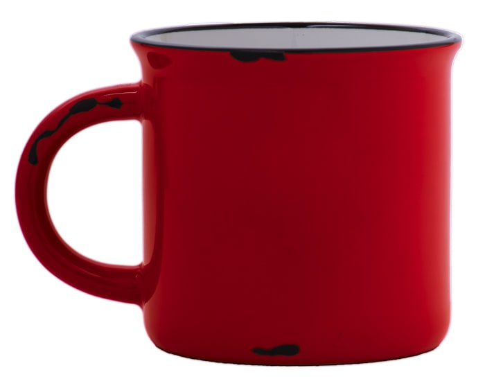 Taza de cerámica de boca abierta. Exterior con efecto retro, tipo peltre. CAP. 14 OZ.