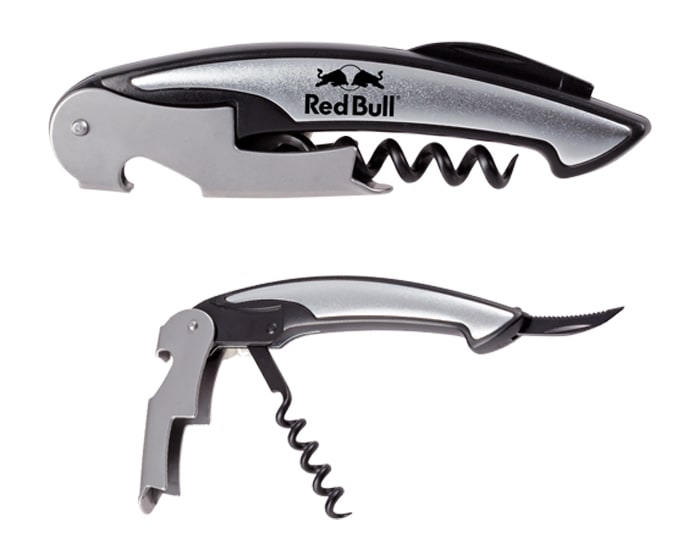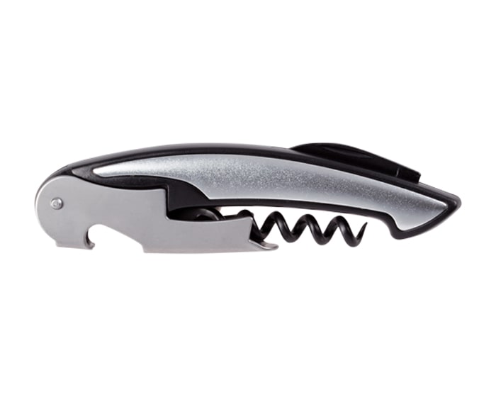 Sacacorchos con destapador y navaja de acero inoxidable. Presentación: caja blanca.